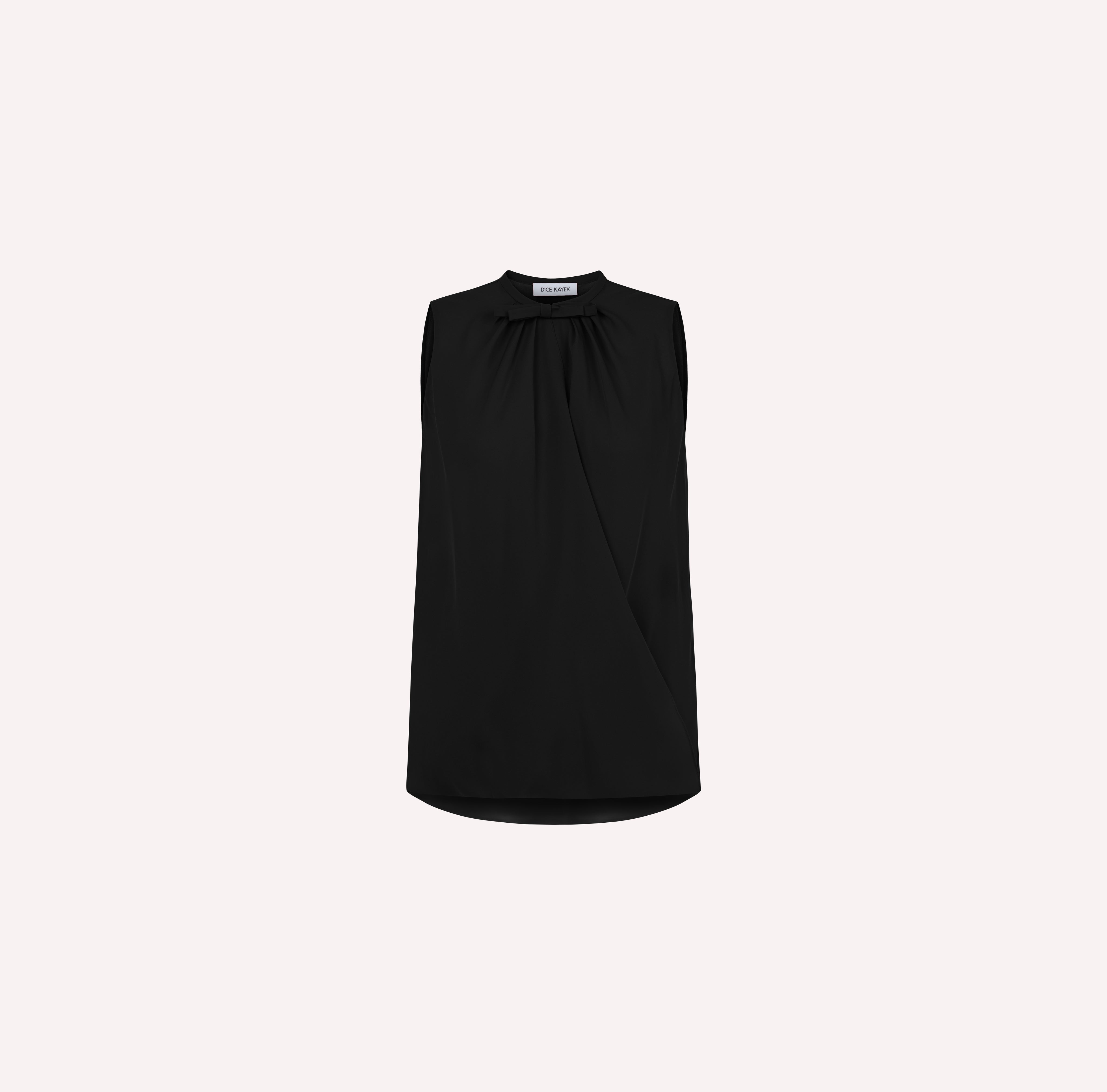 This elegant black tank top features a tailored fit and a distinctive bow detail with a pleating neckline, adding a touch of sophistication to any look. Crafted from premium silk, the sleeveless design makes it a versatile piece for both day and evening wear.