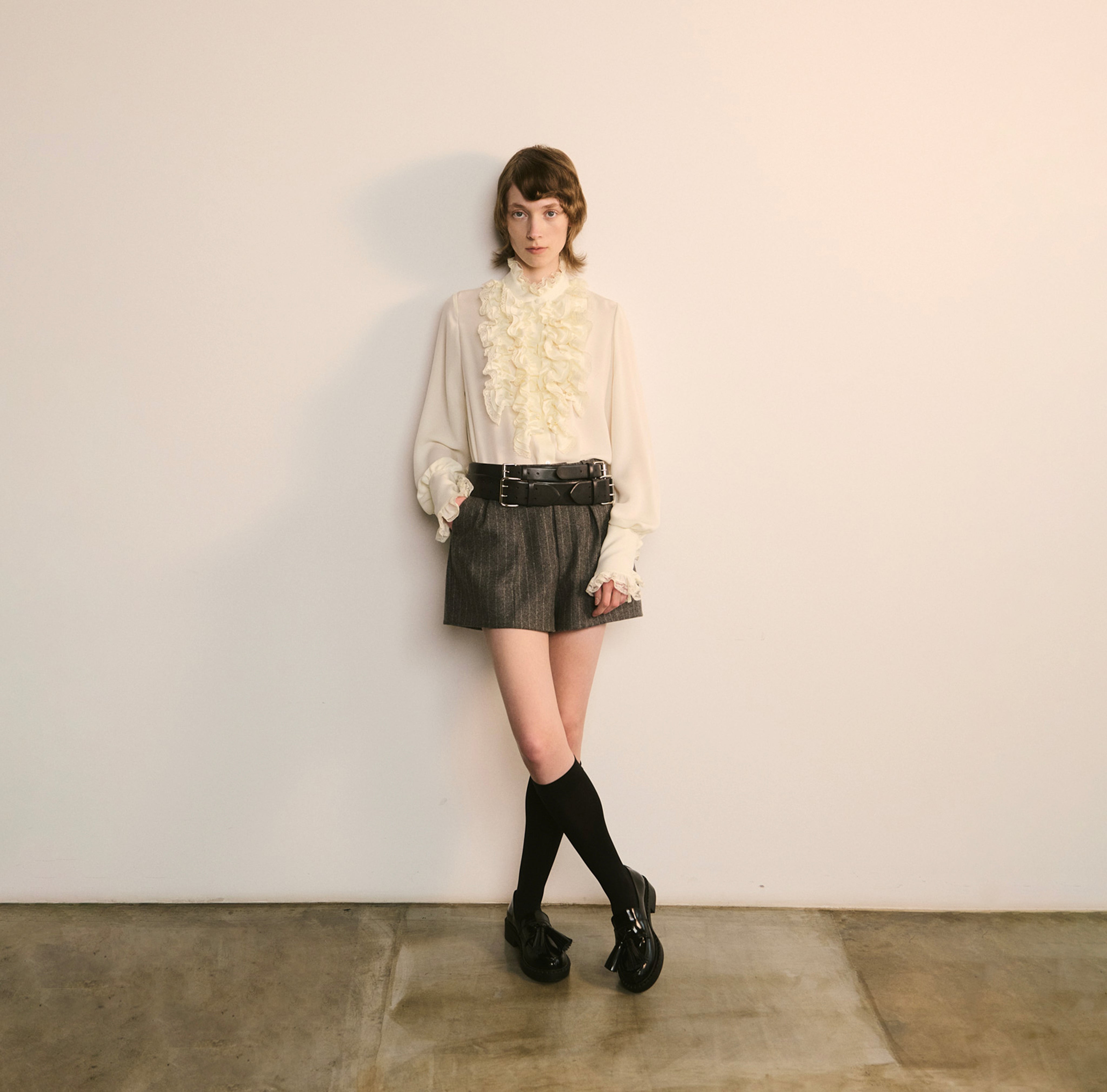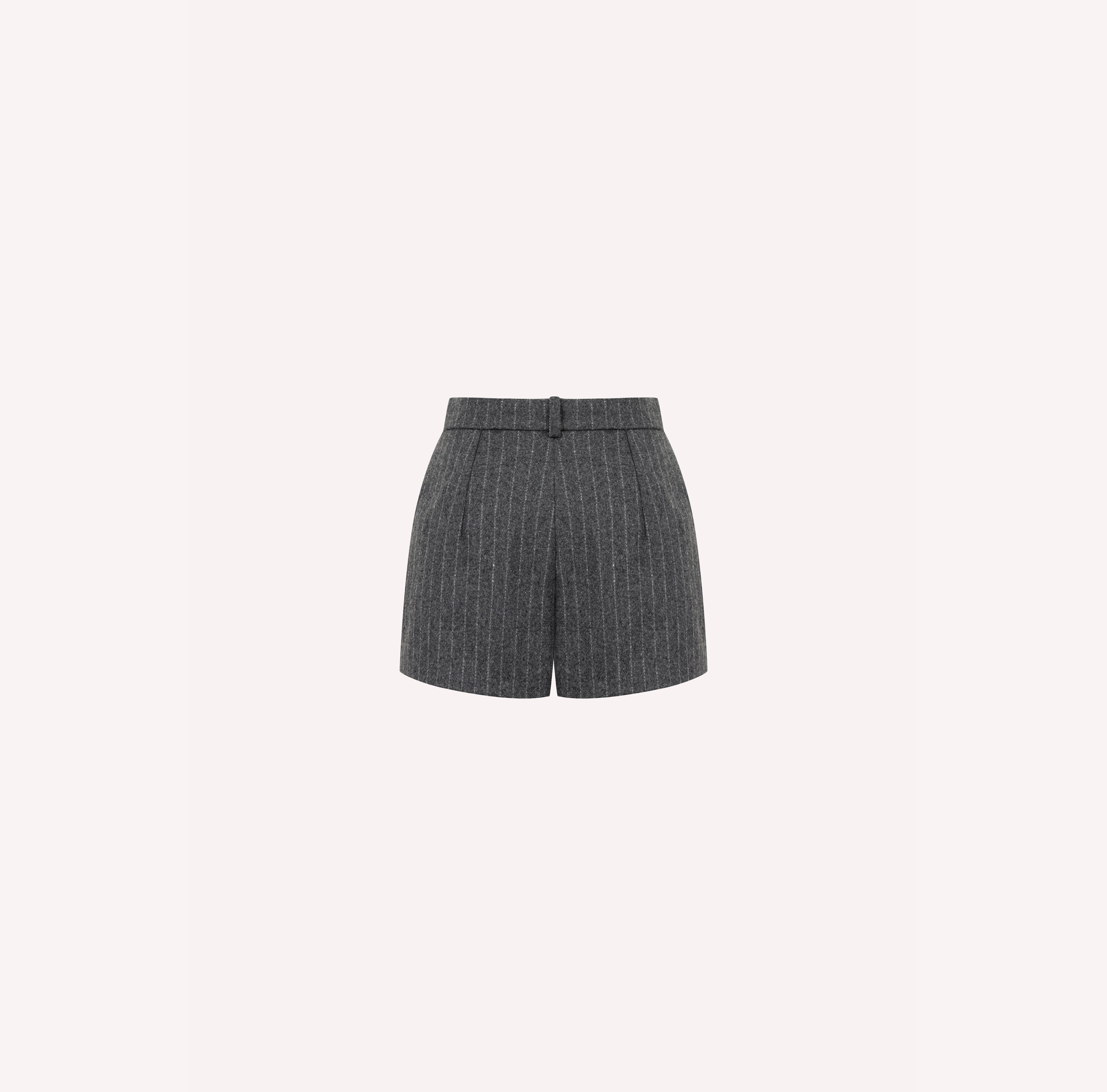 Minimalist refinement meets everyday versatility in these striped wool tailored shorts. Crafted from lightweight wool with subtle white pinstripes, they reinterpret classic design into a modern silhouette. The high-waisted cut elongates the frame, while the precise tailoring balances comfort with structure. Effortlessly sophisticated, these shorts offer a fresh take on timeless wardrobe staples.