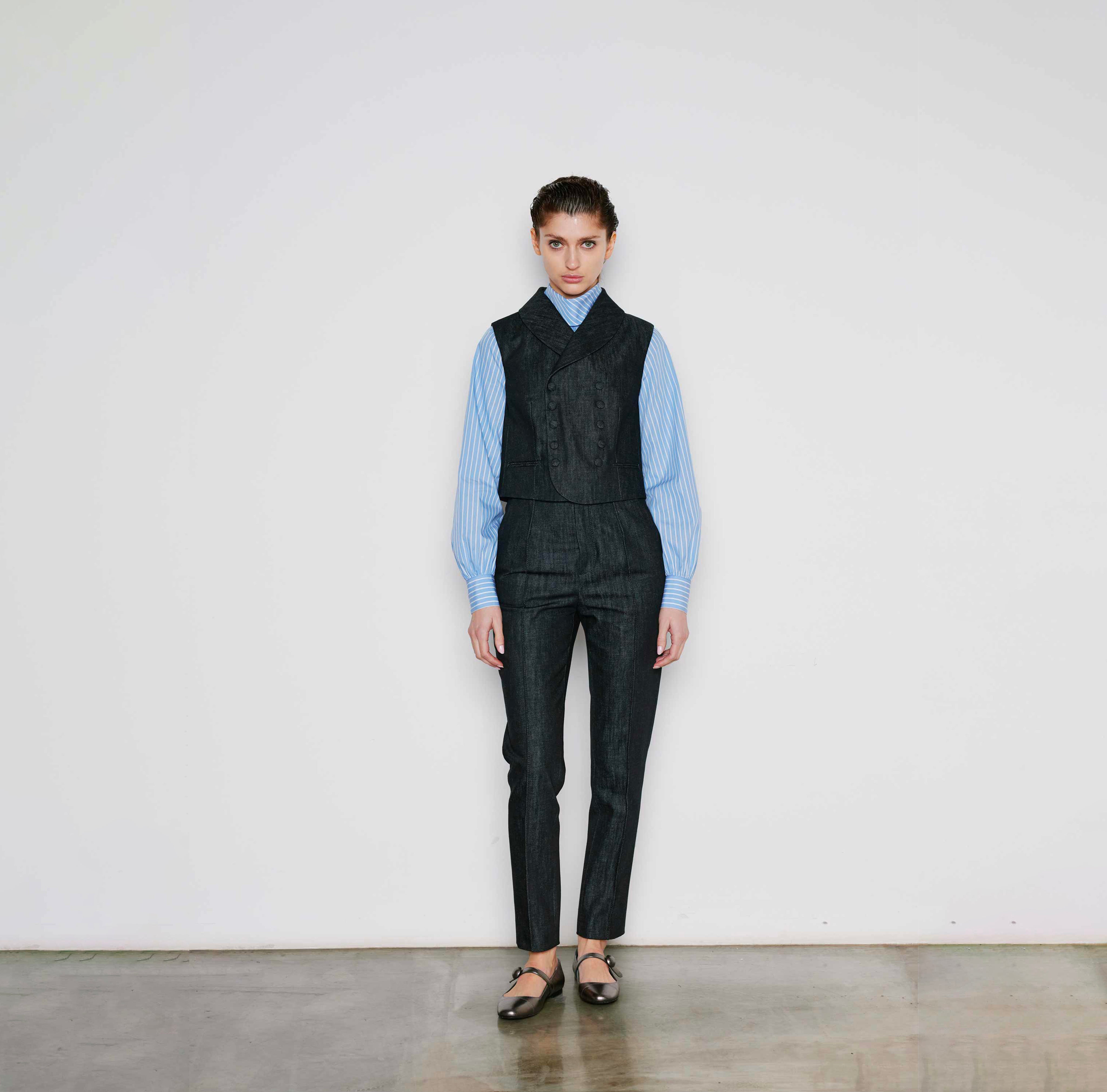 Tailored High-Waist Denim Pants